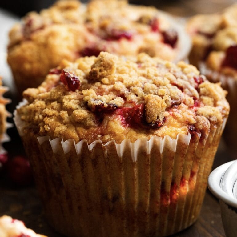 Delicate and fluffy muffins with tangy cranberry sauce – a scrumptious approach to make use of leftovers to carry a festive taste to Christmas morning.