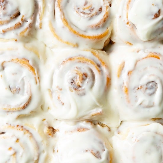 Delicate, fluffy and full of buttery cinnamon filling, these cinnamon rolls are the star of Christmas morning. Cream cheese frosting melts in each swirl for an irresistible breakfast deal with.